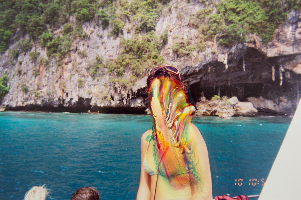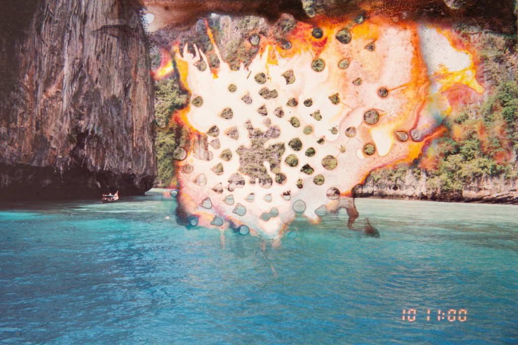 Fotografías personales análogas borradas a mano.